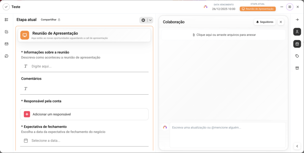 Coloca a aba de colaboração (comentários, interações e contexto) em evidência.