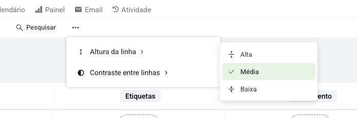 3. Escolha entre as opções de Altura da linha e Contraste entre linhas.