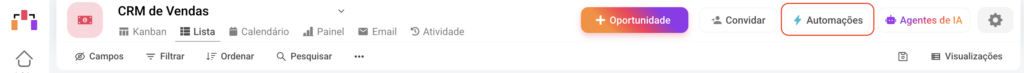 Dentro do fluxo, acesse o menu Automações e clique em Adicionar nova automação.