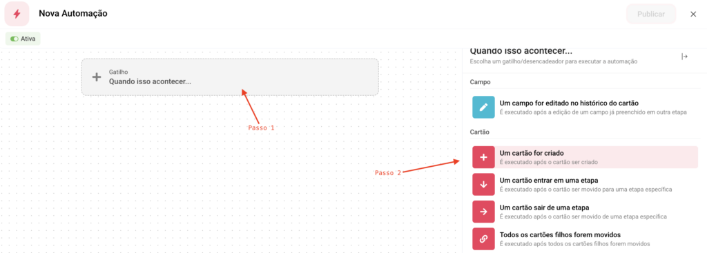 2️⃣ Defina o gatilho